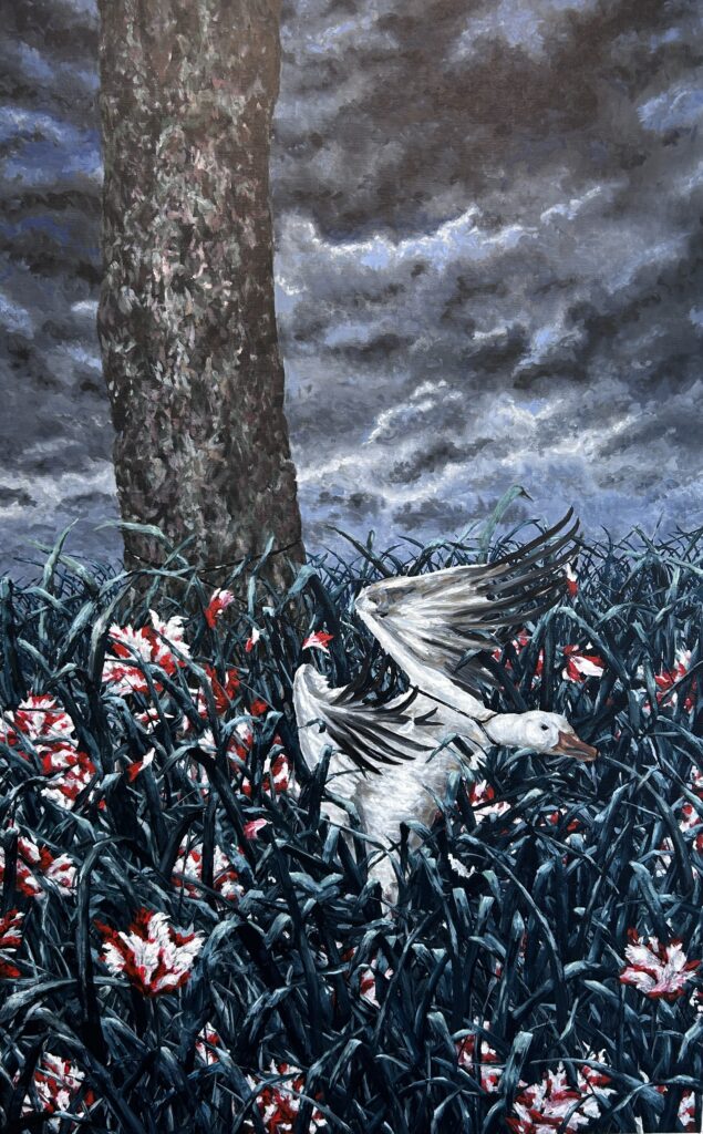 Clara Lundgren, föddes i Jönköping (1980) och växte upp på Gotland. Claras arbete omfattar främst måleri, särskilt akrylfärger, och hon skapar även keramiska skulpturer. Hennes konst utforskar det invecklade förhållandet mellan människor, djur och natur. Detta innebär att hon ofta blandar realism med surrealistiska element för att skapa drömlika scener som förmedlar både skönhet och brådska.